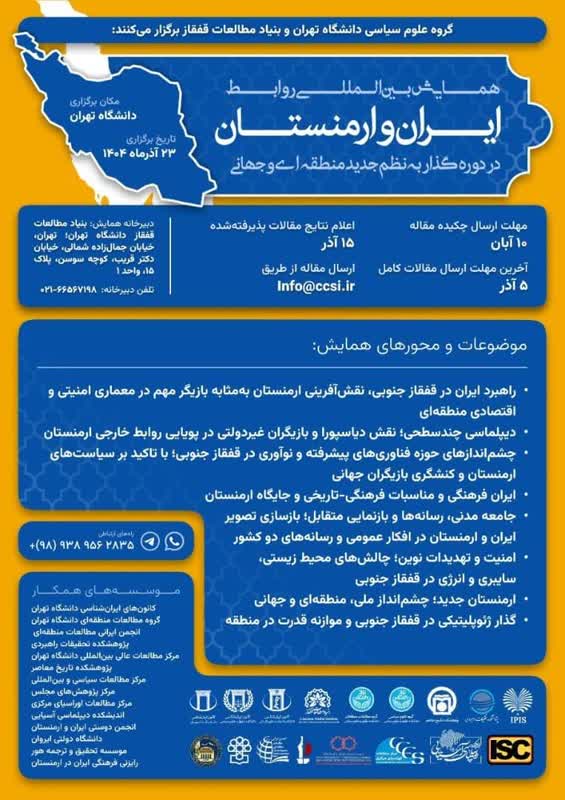 برگزار کنندگان: گروه علوم سیاسی دانشکده حقوق و علوم سیاسی دانشگاه تهران و بنیاد مطالعات قفقاز دانشگاه تهران